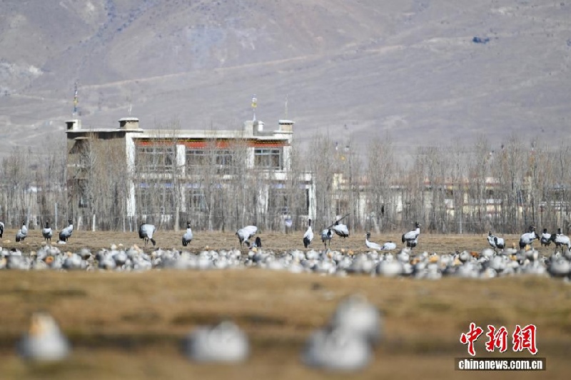 28 ноября, ?Жэньминь жибао? онлайн -- В природный заповедник уезда Линьчжоу Сицзанского автономного района /Юго-Западный Китай/ на зимовку прилетает большое количество черношейных журавлей.…
