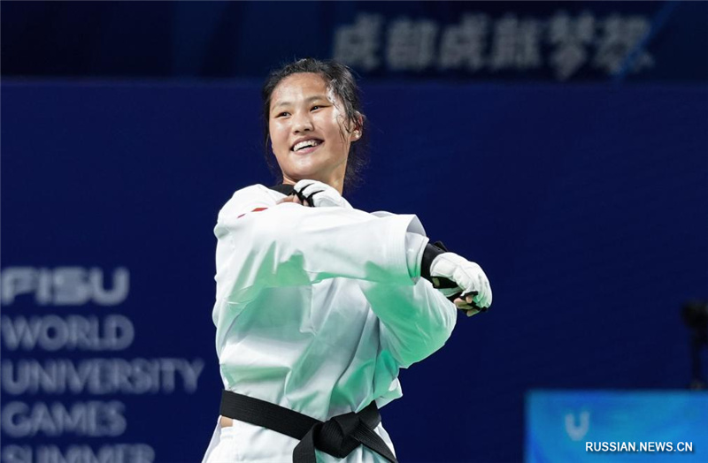 Спортсменка из Китая завоевала золото в соревнованиях по Тхэквондо в весовой категории свыше 73 кг в рамках Универсиады в Чэнду