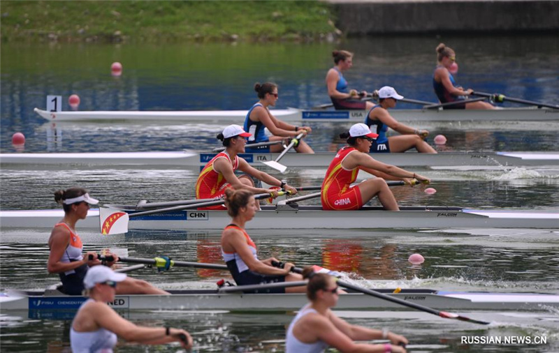 Китайские спортсменки завоевали золото в финале соревнований по гребле среди женских двоек распашных в рамках Универсиады в Чэнду