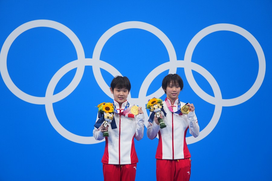 Токио, 25 июля /Синьхуа/ -- Китаянки Ши Тинмао и Ван Хань в воскресенье завоевали золото в синхронных прыжках с трехметрового трамплина в воду на Олимпийских играх в Токио, набрав 326,40 баллов.…