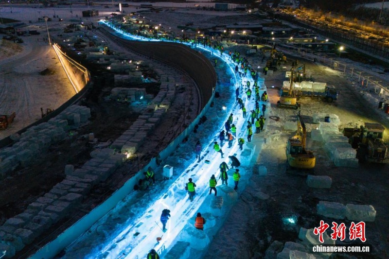 В Харбине началось строительство ледяной горки длиной 521 метр