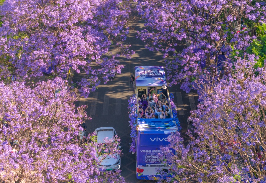 9 мая, ?Жэньминь жибао? онлайн -- Недавно в Куньмине, административном центре провинции Юньнань /Юго-Западный Китай/, расцвела жакаранда.…