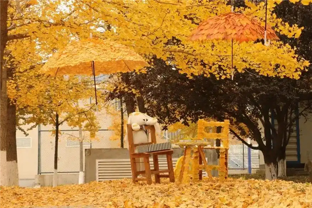 В Даляне уборщицы университета устроили осеннюю сказку из листьев гинкго