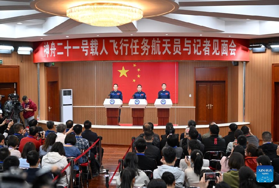 Цзюцюань, 30 октября /Синьхуа/ -- Чжан Лу, У Фэй и Чжан Хунчжан, три китайских космонавта, которые выполнят пилотируемую космическую миссию "Шэньчжоу-21", в четверг встретились с прессой.…