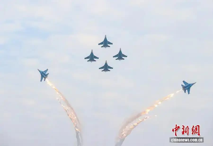 Наньчан, 4 ноября /Синьхуа/ -- Российская авиационная группа высшего пилотажа "Русские Витязи" в составе 6 истребителей Су-35С и одного Су-30СМ выступила на Наньчанском авиашоу и выставке авиационной промышленности, проходившем с 31 октября по 2 ноября в городе Наньчан /адм.…