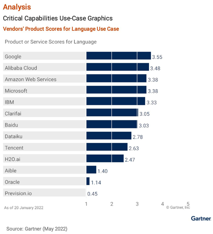 8 июля, ?Жэньминь жибао? онлайн -- На днях международная исследовательская и консалтинговая компания Gartner, специализирующаяся на рынках информационных технологий, опубликовала ?Отчет о ключевых способностях службы разработчиков облачного искусственного интеллекта?, из которого видно, что китайская компания Alibaba получила самые высокие баллы по четырем пунктам из шести имеющихся, и заняла второе место в мире по общему баллу в области обработки естественного языка.…