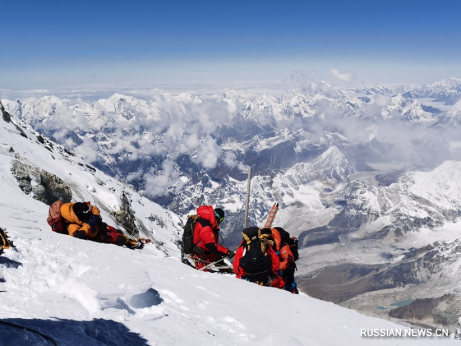 Базовый лагерь на горе Джомолунгма, Тибет, 4 мая /Синьхуа/ -- Члены китайской экспедиционной группы в среду достигли вершины горы Джомолунгма.…