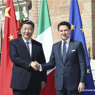 Рим, 23 марта /Синьхуа/ -- Председатель КНР Си Цзиньпин и премьер-министр Италии Джузеппе Конте сегодня здесь провели переговоры, в ходе которых обсудили совместное развитие китайско-итальянских отношений в новую эпоху, а также присутствовали на церемонии подписания меморандума о взаимопонимании по совместному продвижению инициативы "Пояса и пути".