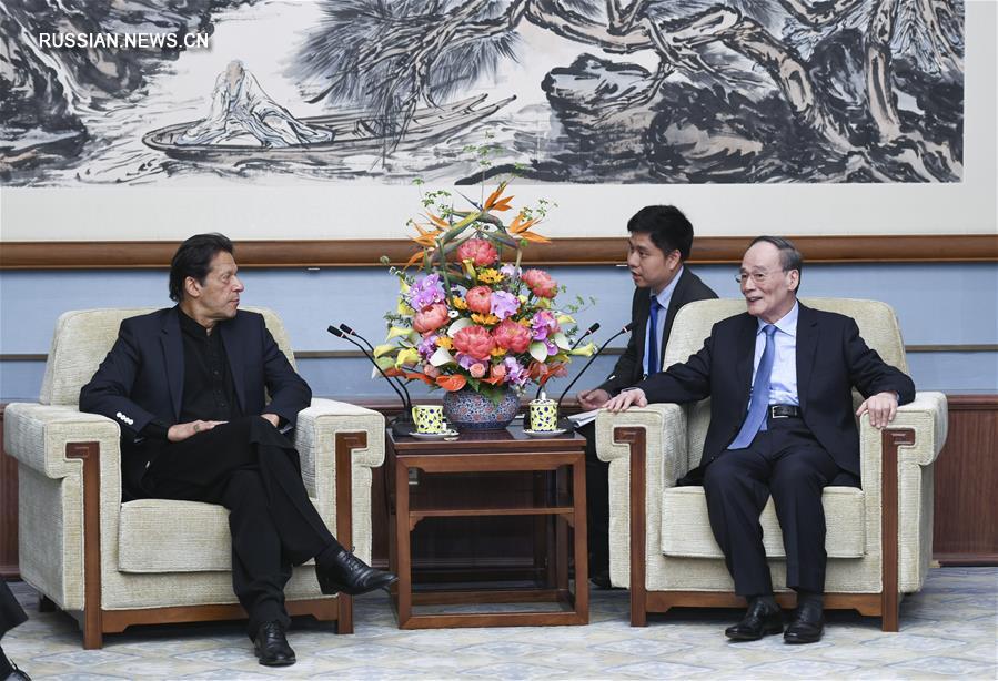 Пекин, 28 апреля /Синьхуа/ -- Заместитель председателя КНР Ван Цишань в субботу встретился с премьер-министром Пакистана Имраном Ханом, который прибыл в Пекин для участия во 2-м Форуме высокого уровня по международному сотрудничеству в рамках "Пояса и пути". Ван Цишань сказал, что в реализации проекта китайско-пакистанского экономического коридора уже получены первые результаты.