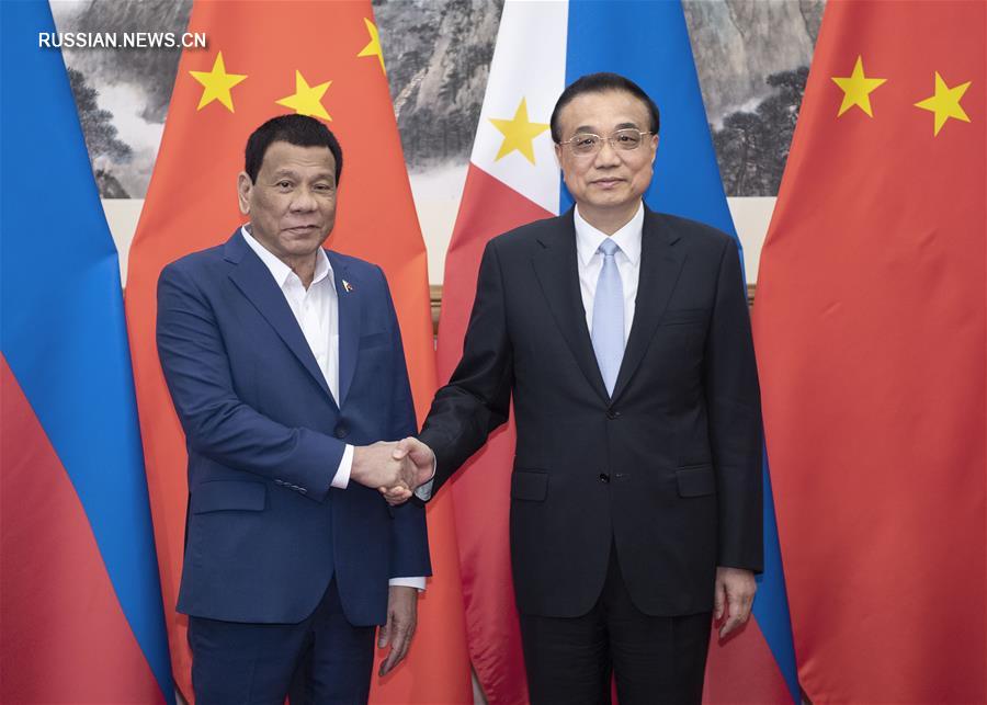 Пекин, 25 апреля /Синьхуа/ -- Премьер Госсовета КНР Ли Кэцян сегодня встретился в государственной резиденции "Дяоюйтай" с президентом Филиппин Родриго Дутерте. Ли Кэцян отметил, что Китай и Филиппины -- близкие соседи, которые разделены морем.