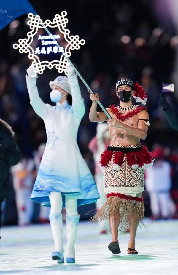 8 февраля, ?Жэньминь жибао? онлайн -- На церемонии открытия зимних Олимпийских игр в Пекине знаменосец Американского Самоа Натан Крамптон не испугался холода и появился с оголенным торсом в соломенной юбке и шлепанцах. После церемонии открытия его прозвали "самым замерзшим знаменосцем зимних Олимпийских игр".