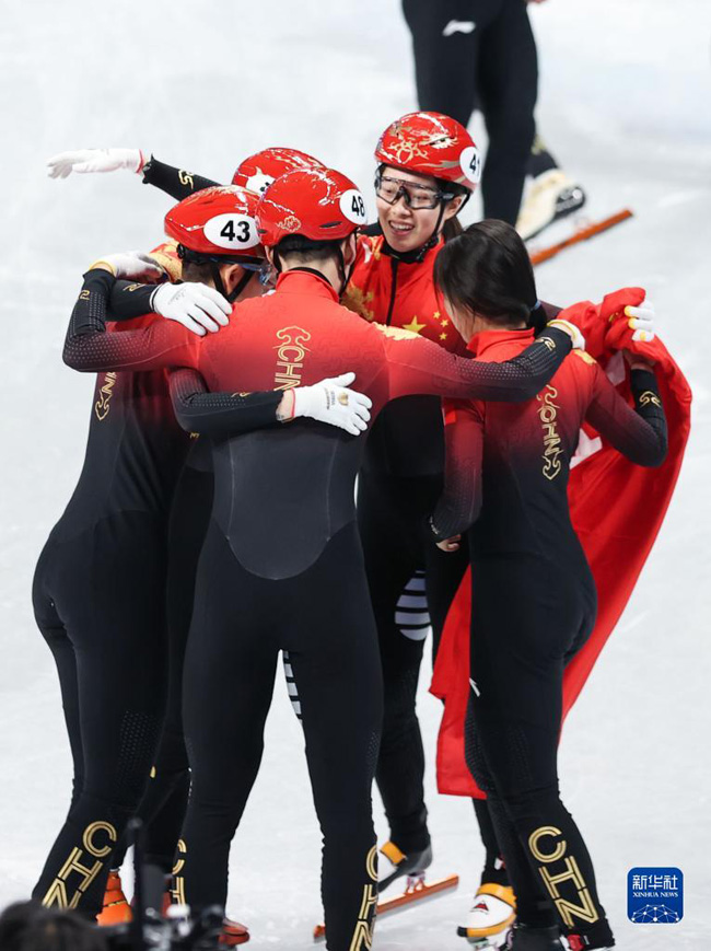 Пекин, 5 февраля /Синьхуа/ -- Сборная Китая по шорт-треку сегодня принесла стране первое золото в смешанной эстафете на дистанции 2000 метров на зимних Олимпийских играх 2022 года в Пекине. Фань Кэсинь, Цюй Чуньюй, Жэнь Цзывэй и У Дацзин завоевали золото с результатом 2 минуты и 37,348 секунды.