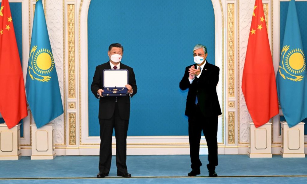 Нур-Султан, 14 сентября /Синьхуа/ -- Во второй половине дня среды президент Казахстана Касым-Жомарт Токаев в своей резиденции вручил председателю КНР Си Цзиньпину орден "Алтын кыран" /"Золотой орел"/.