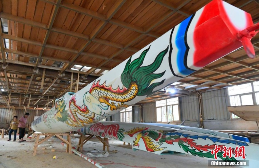 Мастера китайской деревни Фанчжуан заняты изготовлением лодок-драконов