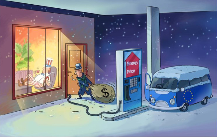 28 ноября, ?Жэньминь жибао? онлайн -- Под влиянием украинского конфликта европейские страны оказались в энергетическом кризисе из-за ответной реакции России на санкции. Себестоимость производства растет, цены на товары увеличиваются, жизнь становится дорогой, а экономика сталкивается с рисками и вызовами.