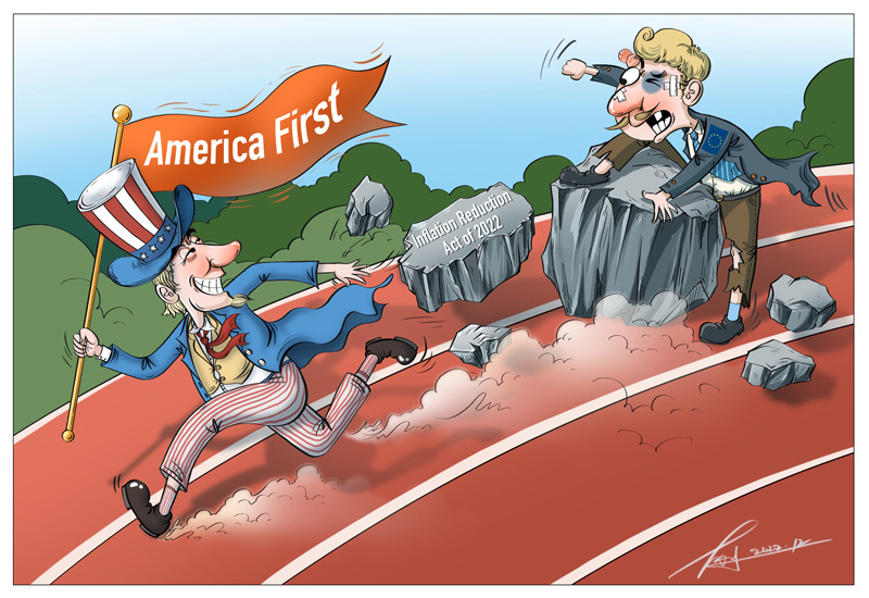 16 декабря, ?Жэньминь жибао? онлайн -- Выдвинутый в США Закон о снижении инфляции вызвал недовольство европейских стран. Под предлогом ?снижения инфляции? этот законопроект полон высокомерия с лозунгом ?Америка превыше всего? и протекционизма.