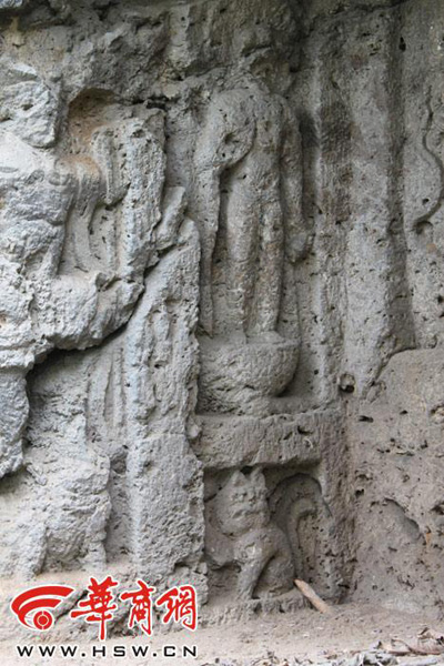 Это место находится в каменной горе поселка Цайцзяпо города Цишань, в общей сложности здесь насчитывается пять пещер, внутри – резные скульптуры. Вчера глава центра по защите культурного наследия Отдела туризма и материального наследия г.Баоцзи Лун Цзяньхуэй сказал, что по первоначальным оценкам, скульптуры насчитывают более 1600 лет и были созданы в эпоху династии Северная Вэй. Лун Цзяньхуэй заявил, что что несмотря на то, что каменные статуи были довольно сильно повреждены ветром, однако еще можно увидеть их красоту и реалистичность. В одном из углублений есть каменная статуя, похожая на ?кота, приносящего удачу? - у него не только выпуклые глаза, толстое тело и длинный хвост, но он также сидит на корточках, опустив одну лапу на землю, а другой будто приманивая людей: ?это доказывает, что в то время в повседневной жизни уже существовали кошки?. Лун Цзяньхуэй пояснил, что данная пещера посвящена Будде, однако в период династии Северная Вэй в этой местности поклонение Будде встречалось крайне редко, поэтому этот факт имеет большое значение для изучения культурного и религиозного наследия того времени.-0-