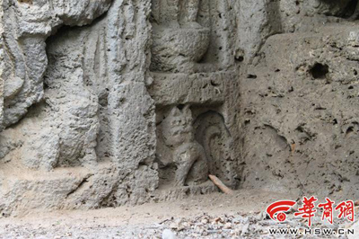 Это место находится в каменной горе поселка Цайцзяпо города Цишань, в общей сложности здесь насчитывается пять пещер, внутри – резные скульптуры. Вчера глава центра по защите культурного наследия Отдела туризма и материального наследия г.Баоцзи Лун Цзяньхуэй сказал, что по первоначальным оценкам, скульптуры насчитывают более 1600 лет и были созданы в эпоху династии Северная Вэй. Лун Цзяньхуэй заявил, что что несмотря на то, что каменные статуи были довольно сильно повреждены ветром, однако еще можно увидеть их красоту и реалистичность. В одном из углублений есть каменная статуя, похожая на ?кота, приносящего удачу? - у него не только выпуклые глаза, толстое тело и длинный хвост, но он также сидит на корточках, опустив одну лапу на землю, а другой будто приманивая людей: ?это доказывает, что в то время в повседневной жизни уже существовали кошки?. Лун Цзяньхуэй пояснил, что данная пещера посвящена Будде, однако в период династии Северная Вэй в этой местности поклонение Будде встречалось крайне редко, поэтому этот факт имеет большое значение для изучения культурного и религиозного наследия того времени.-0-