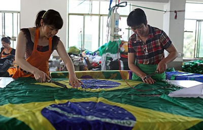 Выполнение этого заказа принесет ей более 8 млн юаней дохода, но она говорит: ?В этом году полученные нами заказы гораздо меньше, чем во время Кубка мира 2010 в Южной Африке, по сравнению с тем временем, наши заказы сократились на 10-15%?.