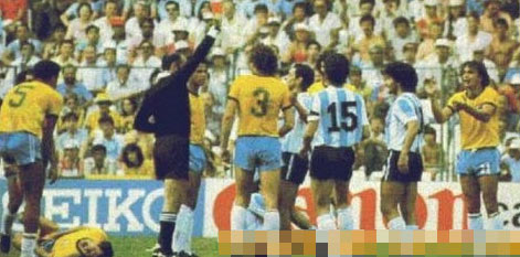 ЧМ-1982, Бразилия - Аргентина: Марадона, который вперые участвовать в чемпионате мира по футболу, получил красную карточку.