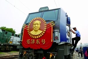 Поскольку локомотив ?Мао Цзэдун? имеет особое значение, его внешний облик отличается от других составов.