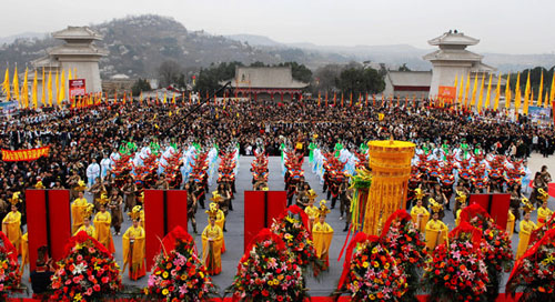 Усыпальница Хуан-ди (?Желтый император?) – гробница родоначальника китайской нации, расположена в уезде Хуанлин города Яньань провинции Шэньси. Гробница Хуан-ди является важным культурным объектом страны первой группы, называется ?первой гробницей в Поднебесной?. Усыпальница Хуан-ди в древности называлась ?Цяолин?, была местом поклонения Хуан-ди императоров разных династий и известных деятелей. Согласно историческим записям, самые ранние жертвоприношения Хуан-ди датируются 442 годом до н.э. После становления религиозного обряда в 770 году, на протяжении долгого времени это было местом проведения церемоний жертвоприношения.-о-