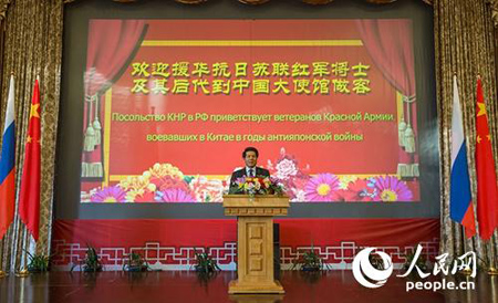 Москва, 3 сентября, ?Жэньминь жибао? онлайн – 2 сентября в посольстве КНР в РФ состоялся торжественный прием для ветеранов Красной Армии Советского Союза, воевавших в Китае в годы антияпонской войны. Мероприятие было посвящено 69-й годовщине победы в войне Сопротивления китайского народа японским захватчикам.