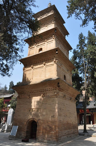 Пагода храма ?Синьцзяо? знаменита тем, что здесь захоронены останки великого буддийского наставника Сюань Цзана, храм расположен у подножия плато Шаолинь недалеко от Сианя.