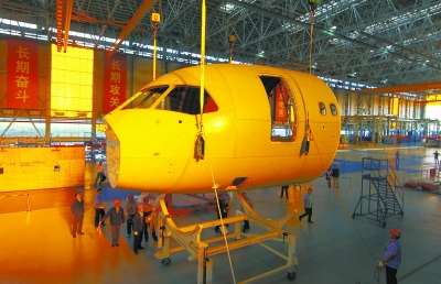 По имеющейся информации, передняя часть корпуса С919 разработана Шанхайским НИИ конструкции самолетов СОМАС и произведена компанией AVIC, длина корпуса составляет 6,66 м, 31 июля была запущена сборочная линия AVIC.