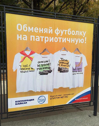 Санкции и ответные санкции привели к сближению и единению россиян, множество предприятий присоединились к ответным мерам, например, некоторые компании по торговле недвижимостью понизили процентные ставки по ипотечным кредитам до 9,5%, а розничные торговцы предлагают ?антисанкционные скидки?. Богатейшие люди страны также не отступают. Шестой по размеру состояния в России Геннадий Тимченко публично заявил: ?Если понадобится, завтра же я отдам своей стране все, что имею?. -о-