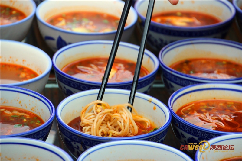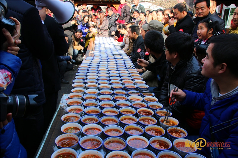 Лапша ?саоцзымянь? - традиционное блюдо северо-западного Китая, известное блюдо города Баоцзи, а самая настоящая по вкусу лапша ?саоцзымянь? в уезде Цишань. На днях в уезде Цишань прошло соревнование по поеданию лапши, интернет-пользователи запечатлели весь процесс этого пиршества. -о-