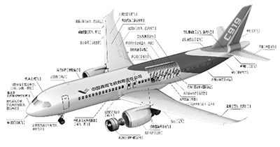 C919 – это второй крупный пассажирский самолет производства Китая после ?Юн-10?, он рассчитан на средние и короткие перелеты с 150 посадочными местами, главными конкурентами являются модели Boeing 737 и Airbus A320. -о-