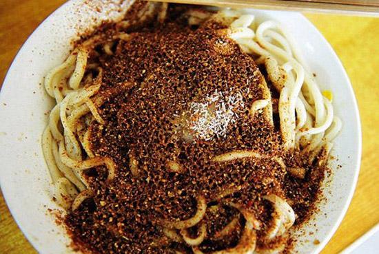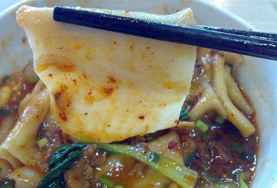 Эту лапшу можно найти на больших улицах и в маленьких переулках города Сиань, отличается она тем, что отваренная лапша окунается в ароматный бульон.