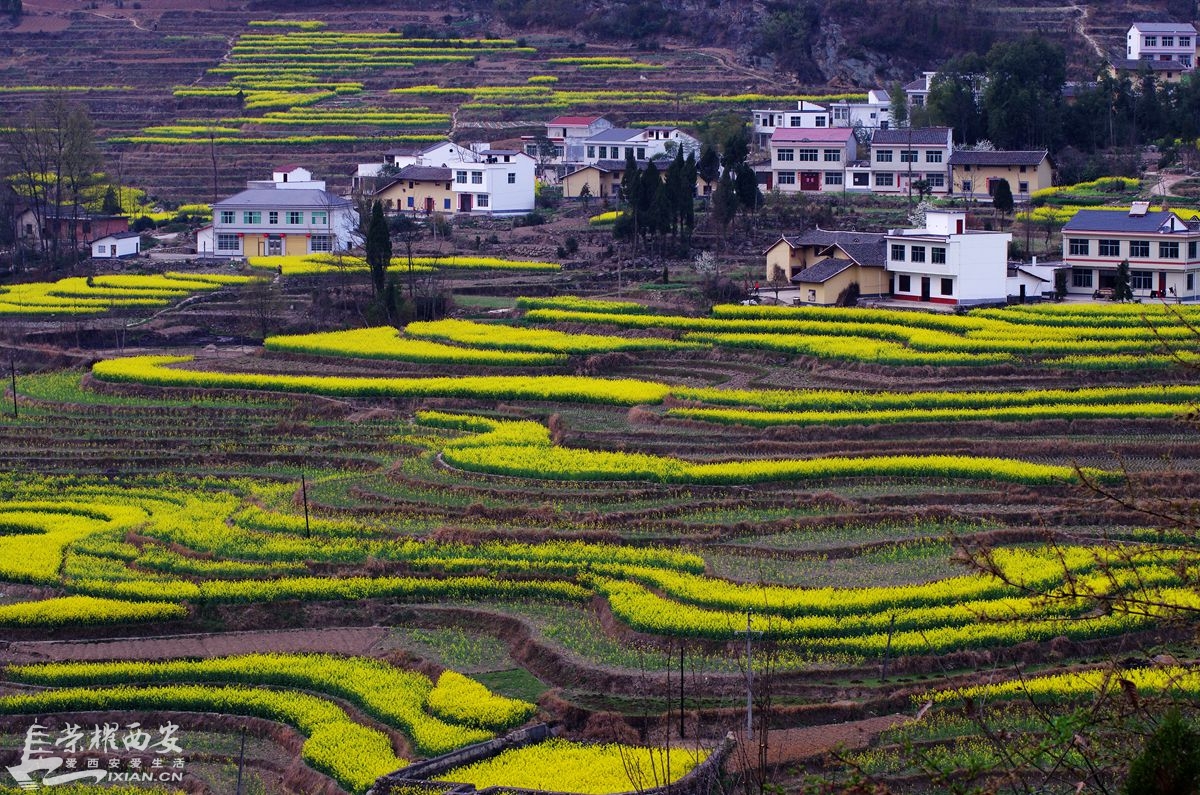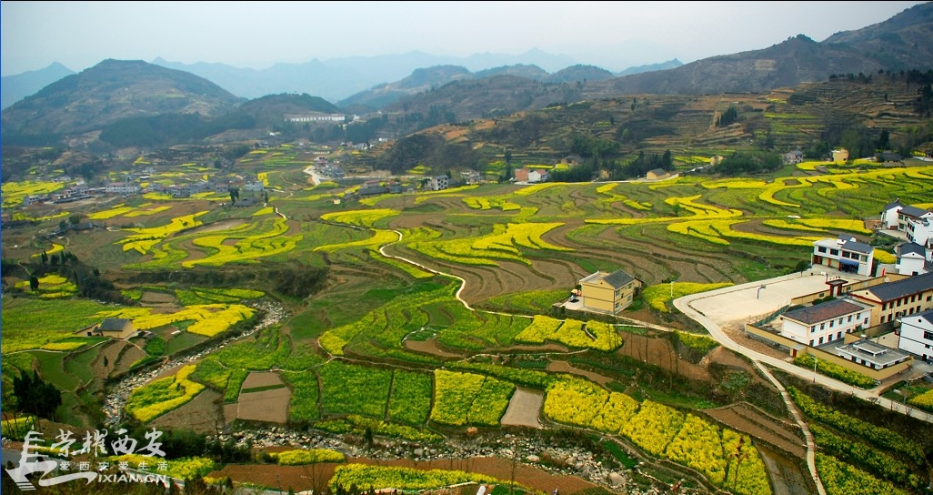 Поселок Сюаньво расположен у южного подножья гор Фэнхуан. Рельеф местности трапециевидный, поселок тянется вдоль реки Ханьцзян. Террасированные поля, которые берут начало во времена правления императора династии Цин под девизом Даогун, очень красивые. Особо следует отметить поля Фэнъянь, которые соединяют в себе "горы, воды, поля, деревни и храмы", здесь необычно красивый и величественный вид.