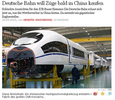 Ханагарт заявила, что китайское правительство активно продвигает экспорт железнодорожной индустрии, для экспорта высокоскоростных поездов может предоставляться кредитная поддержка, а нынешнее качество продукции не сравнимо с прошлым. Ожидается, что китайские железные дороги скоро получат лицензию на импорт от железнодорожного сектора Германии.
