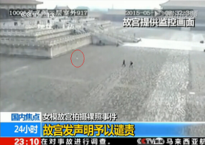 С тех пор, как эта информация получила всеобщую огласку, администрация музея Гугун проверила записи с камер видеонаблюдения и обнаружила, что люди, занимавшиеся фотосъемкой, попали на территорию Запретного города в рабочее время, в 8:30 утра 17 мая.Четыре человека зашли в Гугун через арочный вход с западной стороны главных южных ворот Умэнь. Обнаженная на фотографиях девушка была одета в халат серого цвета. В 8:50 утра работники Запретного города во время обхода обнаружили этих четверых людей недалеко от зала Тайхэ ("Высшей гармонии"), они делали непристойные фотографии, им было запрещено продолжать съемки.