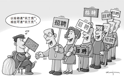 Нельзя полагать, что общее сокращение рабочей силы означает ее нехватку, необходимо рассматривать сочетание спроса и предложения. В отношении проблем поисков работы и трудоустройства, появившихся в последние годы, сотрудник ведомства Министерства трудовых ресурсов и социального обеспечения КНР считает, что ?две сложности? в большей степени являются структурными проблемами. Ян Чэнган полагает, что эти ?две сложности? являются временными проблемами, для повышения производительности можно использовать ?замену людей машинами?, что поможет справиться с повышающейся стоимостью рабочей силы. Экономическая структура быстро меняется, однако видимый эффект от образования и повышения квалификации сотрудников наступает довольно медленно, изменение концепций также является определенным процессом, поэтому сближение спроса и предложения на рынке труда может происходить с некоторыми несоответствиями?.