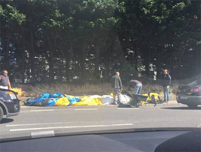 Гигантская фигура надувного миньона — персонажа популярного мультфильма "Миньоны" — упала на проезжую часть в ирландской столице и заблокировала движение, передает газета Independent.