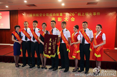 5 августа, ?Жэньминь жибао? онлайн -- Сегодня утром авиакомпания Shenzhen Airlines провела церемонию награждения за предотвращение попытки поджога салона самолета, произошедшую 26 июля, премию получили 9 членов экипажа рейса ZH9648, отправлявшегося 26 июля из Тайчжоу в Гуанчжоу. Члены экипажа получили награду в размере 2,5 млн юаней от Администрации гражданской авиации КНР, Shenzhen Airlines и других организаций. Двое пассажиров, проявивших особую отвагу, получили по 150 тысяч юаней.