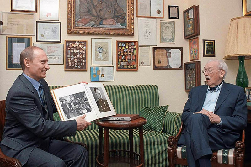 В марте 2003 года, в день 90-летия писателя Сергея Михалкова, Владимир Путин нанес ему визит и подарил альбом с фотографиями юбиляра в молодости. (Фото: www.huanqiu.com)
