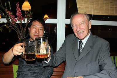 Салал поднимает бокал вместе с китайским журналистом, желая китайско-чешской дружбе долгих лет (Фото: ?Жэньминь Жибао?)