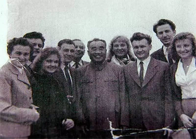 Салал (второй справа) и его коллеги из Посольства Чехословакии в Китае вместе с Чжу Дэ. (Фото: скопировано Ян Жэнем из ?Жэньминь Жибао?)