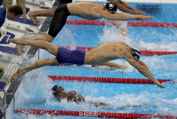 Американский пловец Майкл Фелпс ходил на вакуумно-баночный точечный массаж. (Фото: CCTV)