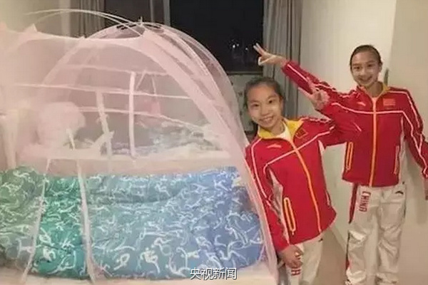Китайские гимнастки разместили в социальных сетях свои фото внутри москитных сеток. (Фото: CCTV)