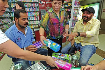 На фото: 3 августа 2016 года в Городе международной торговли Иу клиент из Индии обсуждает бизнес с владельцем магазина. (ИА Синьхуа)