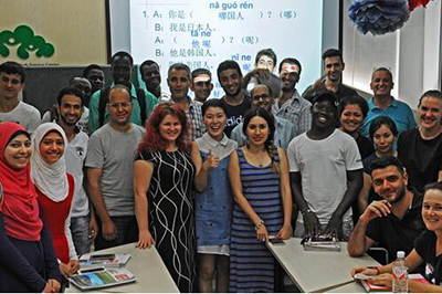 На фото 8 августа 2016 года, преподаватель курса обучения для иностранного бизнес-персонала Чэнь Дань фотографируется со студентами (ИА Синьхуа).