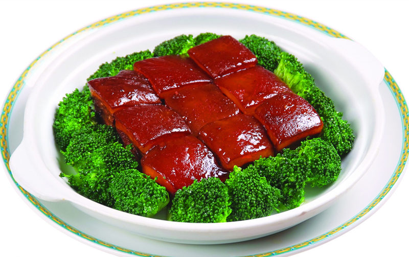 ?Тушеные свиные ребрышки?: Свинина нарезается на ломтики длиной около 6см, половина - жирное мясо, половина - нежирное мясо. Вкус очень приятный, клейкий, но не жирный. Мясо разварное, но не разваливается.