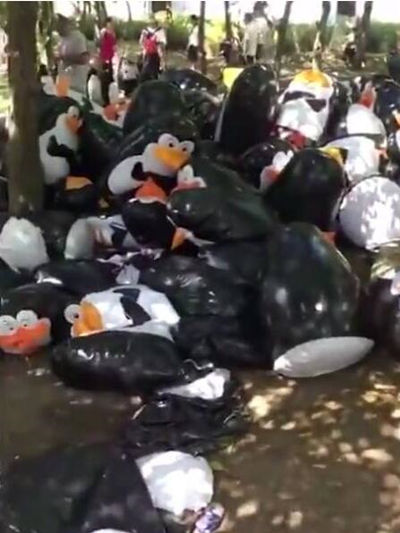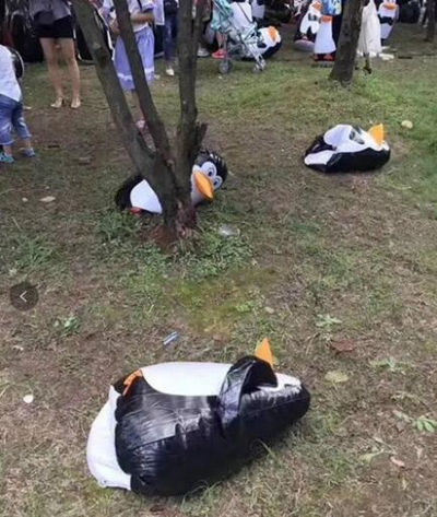 Многие родители хотели воспользоваться выпавшими выходными и таким редким случаем вместе с детьми посмотреть на пингвинов. Однако, уже в самом парке они обнаружили, что так называемые пингвины оказались надувными.