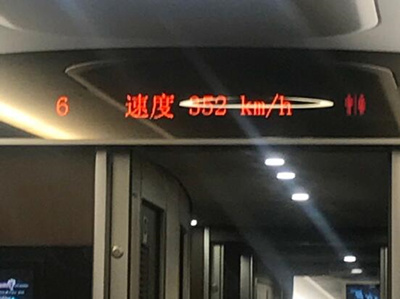 На фото: Скорость 352 км/ч, вагон скоростного поезда "Фусин". Журналист газеты ?Жэньминь жибао? Цян Вэй