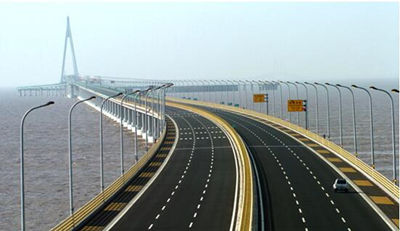 Согласно данным, среди 10 самых протяженных морских мостов мира шесть находятся в Китае: мост Гонконг-Чжухай-Макао, мост через залив Ханчжоувань, мост Дунхай, Циндаоский мост через залив, проект трансокеанских мостов на острове Чжоушань, мост Цзясин-Шаосин. Среди 10 крупнейших вантовых мостов, семь из них построены в Китае; шесть из 10 самых больших висячих мостов в мире также расположены в КНР.